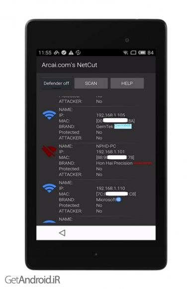 - به سرعت میتوانید تمام كاربران شبكه را در وای فای شناسایی كنید، حتی اگر تلفن شما آدرس IP درستی نداشته باشد یااستفاده از اینترنت وای فای اعطا نشده باشد. هر زمان به هر وای فای متصل شدید نت كات arcai.com شروع به كار میكند.