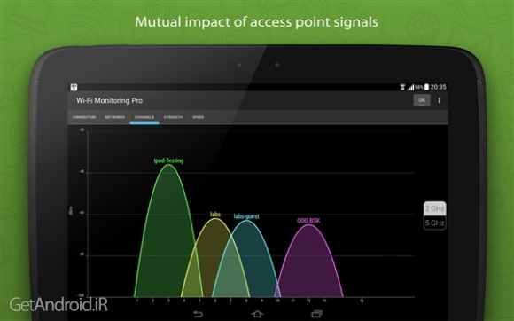 تب کانال سیگنال های شبکه را بسته به فرکانس های آن نشان می دهد. طیف سیگنال با فرکانس مشابه می توانند با هم همپوشانی داشته و بر کیفیت یک اتصال WiFi تأثیر بگذارند.