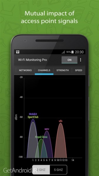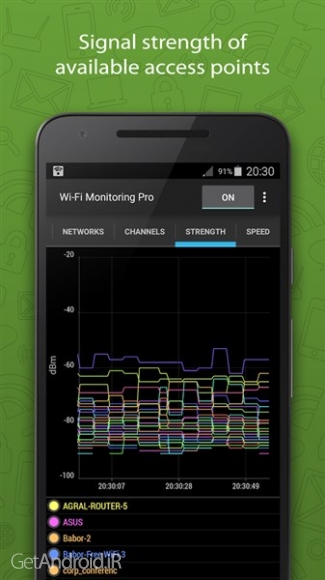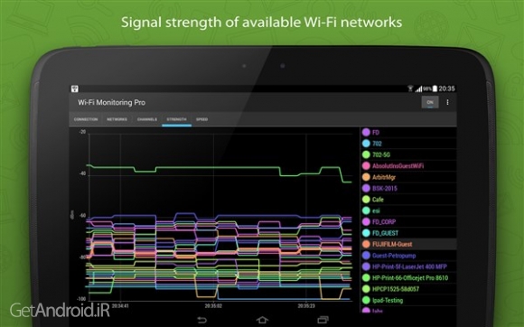 نمودار قوی کمک می کند تا مقادیر سیگنال های شبکه WiFi قابل مشاهده را مقایسه کنید و دینامیک تغییر آن را بررسی کنید.