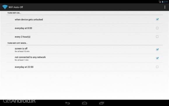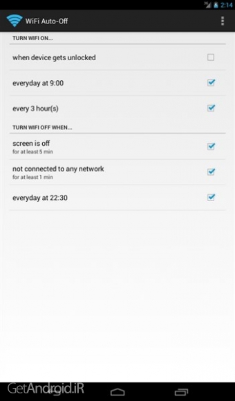 WiFi Automatic Pro v1.7.8 می تواند به شما کمک کند که زمان آماده به کار دستگاه اندروید خود را افزایش دهید. همانطور که میدانید روشن بودن وای فای وقتی که از آن استفاده نمی کنید ، شارژ گوشی اندروید شما را به طور محسوسی کمتر میکنید. زمانی که شما به وای فای نیازی ندارید این برنامه به صورت خودکار WiFi شما را خاموش می کند و در نتیجه مصرف باتری را کاهش می دهد. همچنین اگر دستگاه خود را به کار اندازید یا وقتی وارد یک مکان مشخص شدید می توانید تنظیم کنید که WiFi دوباره به طور خودکار روشن شود. همچنین، برنامه می تواند به طور منظم شبکه های موجود را برای اتصال به Wi-Fi اسکن کند و اگر شبکه مناسب یافت نشد، مجددا اینترنت وای فای را غیرفعال کند. به این ترتیب، هنگام استفاده از دستگاه، همیشه به شبکه WiFi خود متصل می شوید.