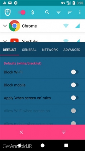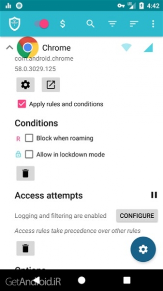 به طور جداگانه اجازه دسترسی یا عدم دسترسی به داده های Wi-Fi و یا تلفن همراه شما را مجاز می کند.برنامه InternetGuard به شما کمک میکند تا :