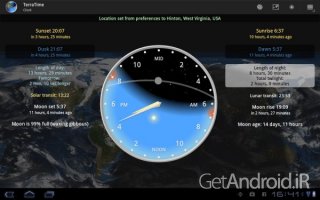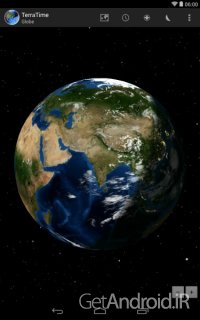 می توانید بوسیله گوشی اندرویدی خود کره زمین را به صورت مجازی و به طور کامل مشاهده کنید. برنامه فوق زمین شبیه سازی شده بسیار جذاب و واقعی می باشد که از طریق ماهواره ها برای ایجاد تصاویر زنده استفاده می کند. این برنامه شب و روز، ابر، خورشید، فصل و ماه را شبیه سازی می کند. از ویژگی های این برنامه شبیه سازی در زمان واقعی ابر ، شهر ، نور ، دریا ، یخ و …، ساعت و قطب نما و نمایش زمان طلوع و خورشید، تصاویر پس زمینه زنده، نشان دادن تمامی مکان ها در هر دقیقه، نمایش غروب آفتاب، دارای نقشه و کاملا لمسی و … می باشد. ساعت و قطب نمای این نرم افزار صور فلکی، هلال ماه و طلوع و غروب را به نمایش گذاشته و گذر زمان را به شما نشان می دهد. برای استفاده از این برنامه فقط کافی است به اینترنت متصل شوید.برخی از ویژگی های برنامه TerraTime اندروید :
