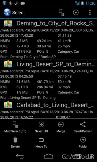 ✤ فرمت ها: NMEA, KML, GPX, CSV