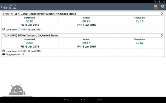 نام برنامه ای برای اطلاع از وضعیت آخرین پروازها از طریق گوشیها و تبلتهای اندرویدی است که توسط کمپانی Flextrela Corporation منتشر شده و در دسترس کاربران قرار گرفته است. با نصب این اپلیکیشن و اتصال به اینترنت دستگاه اندرویدی شما همانند بردهای موجود در فرودگاهها عمل کرده و بصورت real time (به لحظه) زمان نشست و برخاست هواپیماهای خطوط هوایی مختلف را نشان خواهد داد؛ نکته جالب اینکه چنانچه پروازی هم با تاخیر مواجه شود در سریعترین زمان ممکن به شما اطلاع داده خواهد شد تا در صورت لزوم برنامههای خود را تغییر دهید. در کنار نمایش وضعیت پروازها، این اپلیکیشن توانایی پیش بینی وضعیت آب و هوا در 15 روز آینده را نیز داراست که در نوع خود بسیار جالب و کاربردیست؛ چرا که در صورت برنامه ریزی برای یک سفر چند روزه میتوانید بصورت همزمان از پروازهای پیش رو و همچنین وضعیت جوی در روزهای آتی مطلع شوید. عملکرد این اپلیکیشن به اندازه ای ستودنی و چشمگیر بوده که موسسات و نشریات معتیری چون Forbes, WSJ, CNN به نیکی از آن یاد کرده و به تعریف و تمجید آن پرداخته اند.ویژگیهای برنامه Airline Flight Status Tracker: