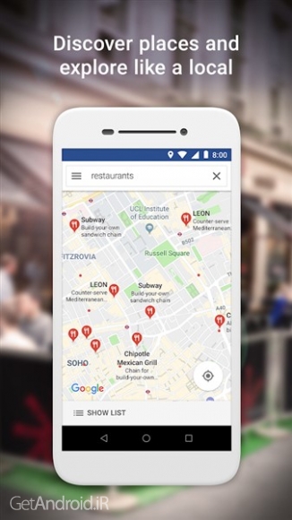 • جستجو و پیدا کردن رستوران های محلی، کسب و کار و دیگر اماکن نزدیک