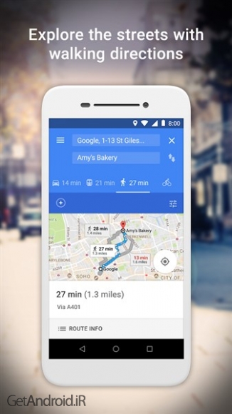 • خیابان ها را با مسیرهای پیاده روی کاوش کنید