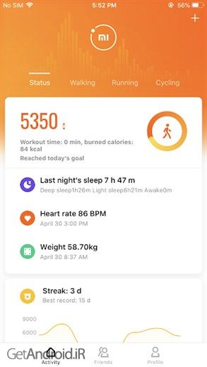 سازگار کنید. برای Pair کردن دو دستگاه به یکدیگر باید ابتدا برنامه می بند شیائومی را بر روی گوشی موبایل خود نصب کرده و سپس با روشن کردن بلوتوث و نزدیک کردن ساعت هوشمند به آن ، مراحل اتصال و جفت شدن را طی کنید.این نرم افزار نیز مانند Google Fit دارای قابلیت ثبت و تعریف اهداف ورزشی است که به شما کمک می کند در زمان ورزش و یا پیاده روی، میزان و کیفیت عملکرد خود مانند تعداد گام های پیموده شده و یا کالری سوزانده شده را بررسی کرده و وضعیت خود را در مچ بند و یا در این اپ مشاهده کنید.