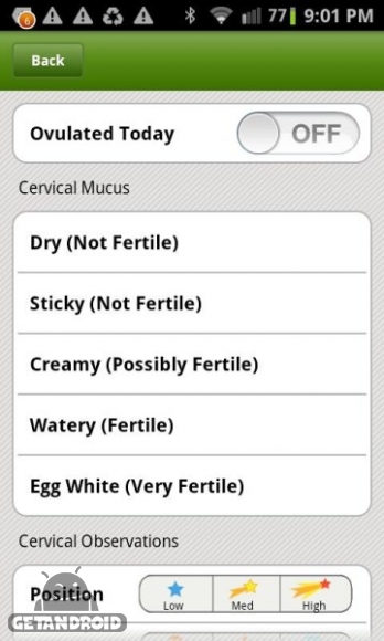 ✤ پیگیری ویژگی های پیشرفته باروری مانند مخاط دهانه رحم و موقعیت ها.