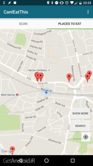 - وارد سایت گت اندروید شده و از بخش جستجو عبارت "CanIEatThis" را تایپ کنید
