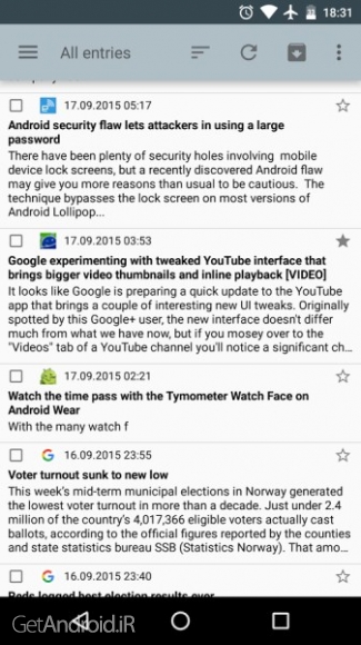برای دانلود RSS Reader و نصب آن از سایت گت اندروید، مراحل زیر را دنبال کنید: