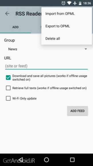 ✤ واردکردن / صادرکردن فید به برنامه (OPML)