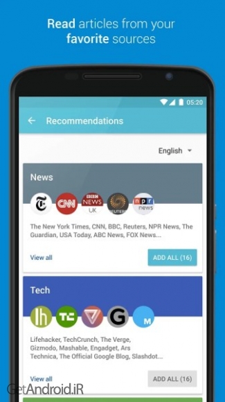 - وارد سایت گت اندروید شده و از بخش جستجو عبارت "Palabre Feedly RSS Reader News" را تایپ کنید