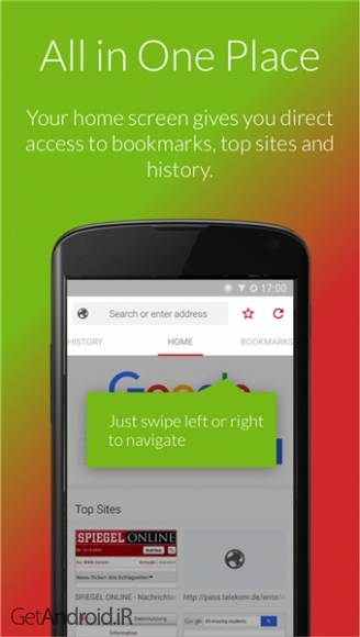 با آزاد کردن فضای ذخیره سازی گوشی و سپس افزایش سرعت مرور، دیگر صفحات ثابتی وجود ندارد. از روانترین گشت و گذار در اینترنت لذت ببرید. پیشنهادات جستجو را در نوار جستجو دریافت کنید و به سرعت به سایت هایی که بیشتر بازدید می کنید دسترسی پیدا کنید. سوال جستجوی خود را تایپ کنید و نتایج پیشنهادی و جستجو شده قبلی را در موتورهای جستجوی مورد علاقه خود دریافت کنید.
