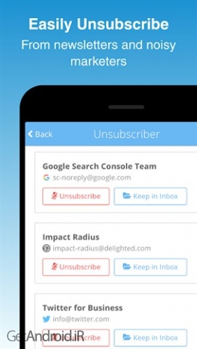 این برنامه همچنین به شما اجازه می دهد تا از فرستندگان ناخواسته جلوگیری کنید و اطمینان حاصل کنید که هرگز ایمیلی از آنها در صندوق پستی خود ندارید.