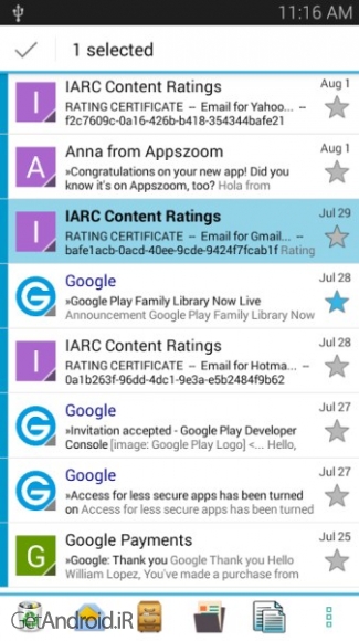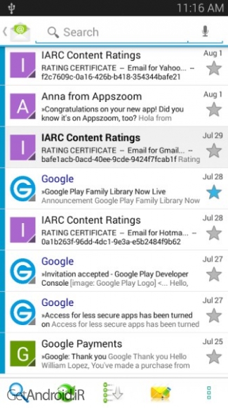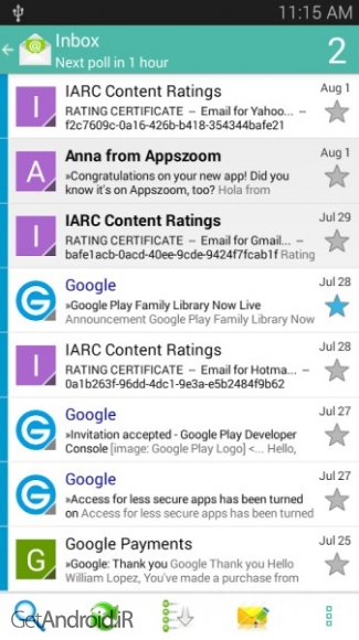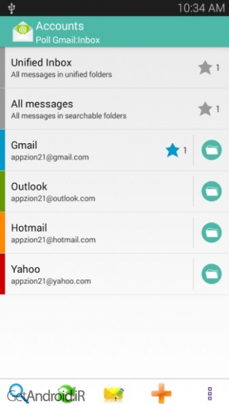 نرم افزار مدیریت ایمیل های شخصی اندروید Email App - All Mails Pro v5.110 نرم افزاري بسيار آسان و سريع ميباشد كه برخلاف ديگر نرم افزار هاي موجود فقط بر روي يك نوع پست الكترونيك تمركز نكرده و از طريق آن به راحتي ميتوانيد به تمام پست الكترونيك هاي موجود مانند هاتميل، ياهو، Outlook, icloud, AOL, Live, GMX و صندوق پستي IMAP, POP3 , و Exchange دسترسي داشته باشيد.