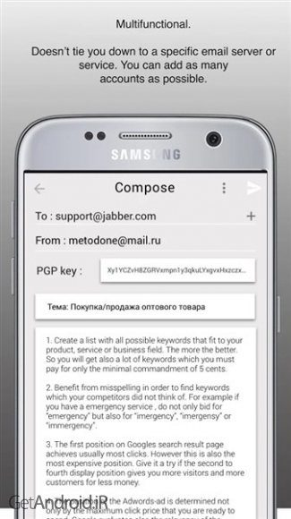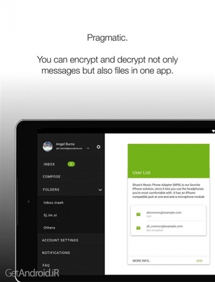 ویژگیهای برنامه EmailSecure - PGP Mail Client اندروید :