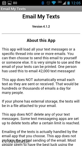 ویژگیهای برنامه Email My Texts SMS اندروید :