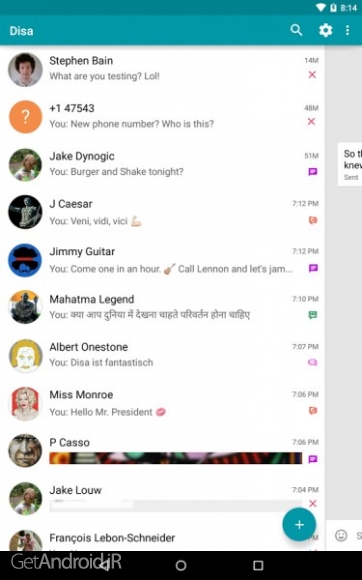 یک اپلیکیشن کاربری برای کسانی است که مسنجرهای زیادی را در گوشی خود نصب کرده اند. اگر شما نیز از جمله این افراد باشید احتمالا برایتان سخت و کلافه کننده است که مدام برنامه های مختلف مسنجر را باز کنید تا ببنید پیامی آنجا برایتان آمده است یا خیر. نرم افزار دیسا تمامی پیام های دوستان از شبکه های اجتماعی گوناگون در یک مکان بصورت دسته بندی شده جمع آوری میکند. این برنامه در اصل برای ایجاد اتحاد میان سرویس های پیام رسانی در موبایل طراحی شده است. با دانلود برنامه Disa مکالمات خود را از همه نرم افزار ها و مسنجرهای دیگر مثل مسنجر فیس بوک ، واتس اپ و … یک جا جمع آوری کرده و به آن سر و سامان بدهید. با این نرم افزار ، علاوه بر یکپارچه شدن مسنجر ها میتوانید به طرز چشمگیری از مصرف باتری و CPU خود جلوگیری کنید.برخی از ویژگی های برنامه Disa اندروید :