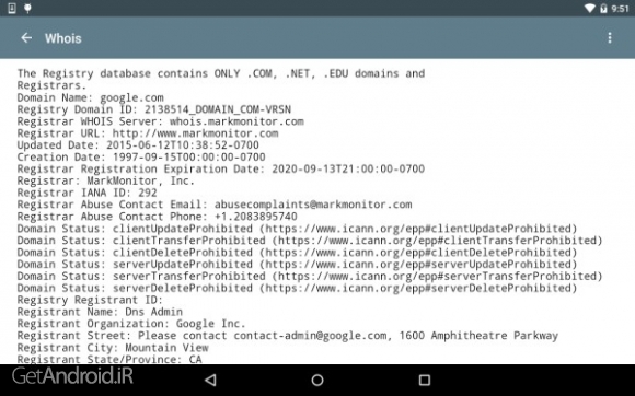 ✤ اطلاعات مربوط به WHOIS سایت و آی پی
