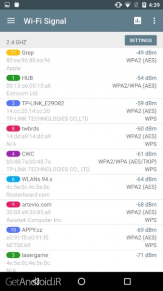 - اطلاعات شبکه WiFi مانند SSID، BSSID، آدرس IP، ignal strength، قدرت سیگنال، و غیره