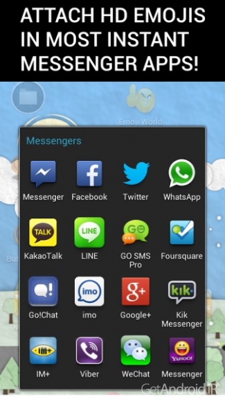 Emoji World با ایمیل، Instagram, Facebook, Facebook Messenger, WhatsApp, kik Messenger, Yahoo, Skype و تمام برنامه های چت معروف کار می کند.