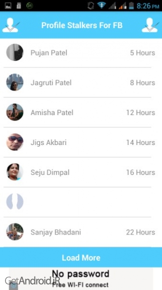 نرم افزاری جالب برای اطلاع از بازدید کنندگان پروفایل فیس بوک شماست. احتمالا شما نیز از جمله کسانی هستید که دوست دارید بدانید چه کسانی از پروفایل شخصی شما در فیسبوک دیدن کرده اند. گت اندروید نیز برای این دسته از دوستان این اپلیکیشن را برای اولین بار در میان سایت های ایرانی و فارسی زبان تدارک دیده است. برنامه از شما میخواهد برای گرفتن لیست به فیسبوک وارد شوید. با استفاده از فیسبوک به عنوان یک منبع و برخی از معیارها برای دریافت لیست به آخرین بازدید مشخصات میپردازیم. اکنون می توانید افرادی که به شما علاقه مدن هستند را ببینید. لیستی از افرادتان در فیسبوک را به شما نشان خواهیم داد. مثلا چه کسی پروفایل تان را می بیند و به شما علاقه مند است. ما از حقه های هوشمندانه استفاده می کنیم تا لیستی از کاربران فیس بوک تان را بدست آوریم که ممکن است مکررا پروفایل تان را ببینند.با کلیک برتصویری که می بینید می توانید تصویری کامل از کاربران را ببینید.در اینجا ترفند این است: