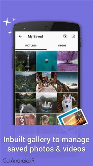 – گالری برای مدیریت عکس ها و ویدئو های برنامه. همچنین می توانید با ویژگی داخلی برنامه قابلیت های ریپست، اشتراک گذاری، قفل و اسلایدشو را داشته باشید.