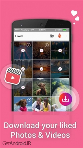 – دانلود عکس ها و ویدئوهای لایک شده با یک کلیک