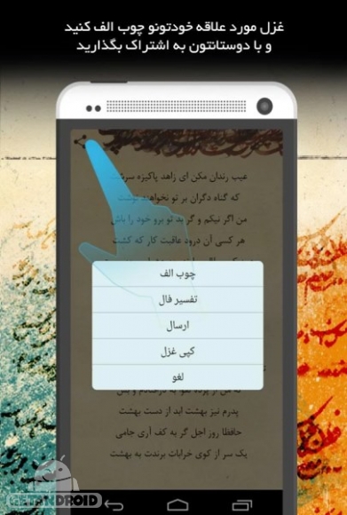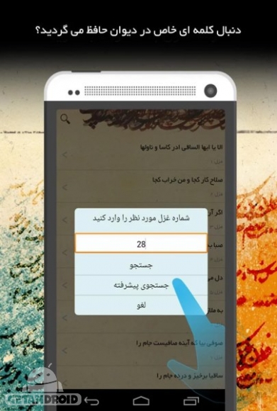 - وارد سایت گت اندروید شده و از بخش جستجو عبارت "Divan of Hafez" را تایپ کنید