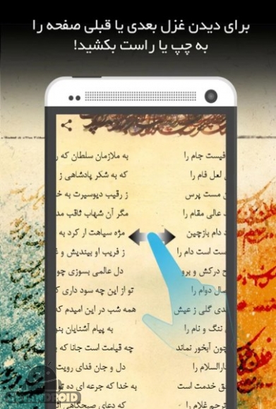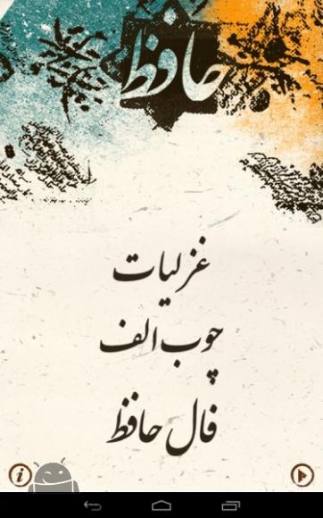 را مخصوص دستگاه های اندرویدی که شامل 495 غزل با دست خط زیبای نستعلیق می باشد را برایتان قرار داده ایم. با استفاده از این اپلیکیشن علاوه بر خواندن غزلیات حافظ با آهنگ و صوت دلنشین ، میتوان از امکاناتی شامل گرفتن فال فقط با تکان دادن گوشی ، مشاعره از طریق بلوتوث و امکانات دیگر نام برد . از نکات برجسته این اپلیکیشن استفاده از طراحی و نشانه های ایرانیست .برخی از ویژگی های دیوان حافظ اندروید :