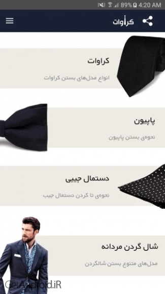 برای دانلود روش های بستن کراوات و نصب آن از سایت گت اندروید، مراحل زیر را دنبال کنید: