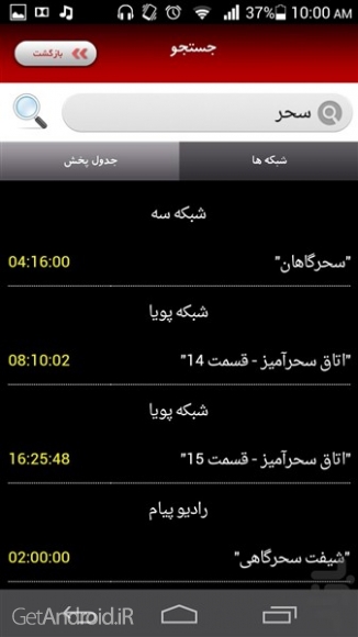 - بر روی گزینه جستجو کلیک کنید تا آخرین نسخه برنامه پخش زنده تلویزیون و رادیو برای شما نمایش داده شود.