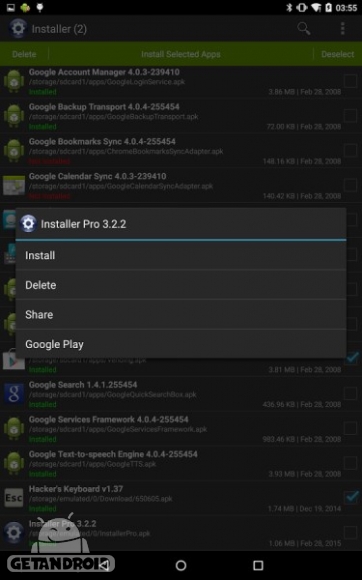 - وارد سایت گت اندروید شده و از بخش جستجو عبارت "Installer - Install APK" را تایپ کنید