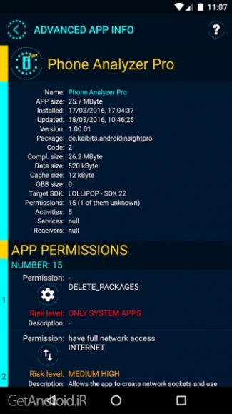 برخی از ویژگی های برنامه Phone Analyzer Pro اندروید :