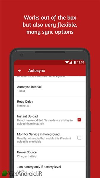 - فاصله autosnc قابل تنظیم: 15 دقیقه ، 30 دقیقه ، هر ساعت ، ...