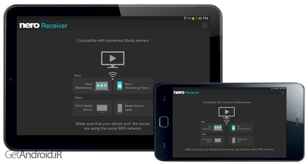 بهترین و آسان ترین راه برای استفاده و دریافت انواع مدیا بر روی دستگاه تلفن همراه می باشد. تلفن و تبلت خود را می توانید از راه دور با کامپیوتر خود کنترل کنید و دستگاهتان به عنوان یک پخش کننده مدیا پلیر و ارائه دهنده فیلم، عکس و موسیقی در PC ذخیره می شود. Nero Receiver با چندین رسانه UPnP / DLNA مثل Nero MediaHome®, Windows Media Player® و غیره سازگار است.برخی از ویژگی های برنامه Nero Receiver اندروید :