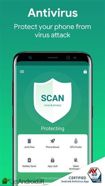 - آنتی ویروس: همیشه از گوشی شما به طور حرفه ای محافظت می کند. ویروس را اسکن و پاکسازی می کند.