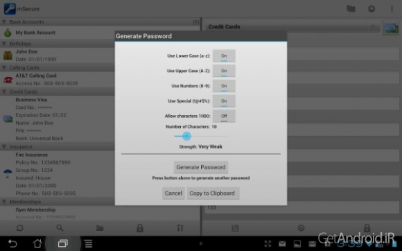 ✦ امکان ذخیره ی اطلاعات شخصی مختلف شماره حساب، نام های کاربری، کلمات عبور و غیره