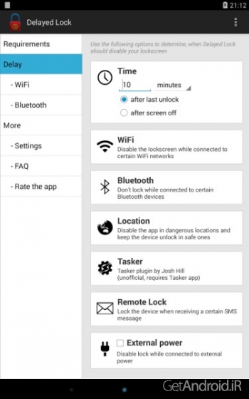 - وارد سایت گت اندروید شده و از بخش جستجو عبارت "Delayed Lock" را تایپ کنید