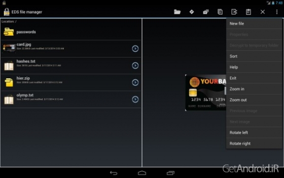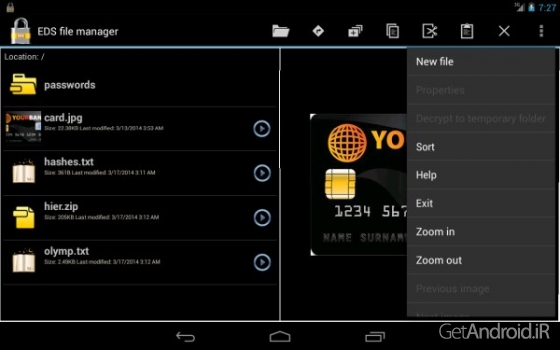 شما می توانید برای جلوگیری از دسترسی غیر مجاز به اطلاعات حساس، فایل های خود را در ظرف های رمزگذاری شده ذخیره کنید. فایل های ظرف TrueCrypt(R)، VeraCrypt(R)، LUKS، CyberSafe(R) پشتیبانی می شوند. این برنامه می تواند در دو حالت عادی(Normal) و سوار شده(Mounted) کار کند. در حالت عادی شما می توانید یک ظرف را بر روی هر دستگاه پشتیبانی شده باز کنید اما این رمزنگاری “on the fly” را ارائه نمی دهد. بنابراین برای باز کردن یک فایل در برنامه خارجی (به جز برخی از فرمت های رسانه ای)، شما باید آن را در محل موقت بازگشایی کنید. حالت Normal تنها از سیستم فایل FAT پشتیبانی می کند. حالت سوار(نصب) شده، رمزنگاری “on the fly” را ارائه می دهد: شما می توانید به طور مستقیم با فایل های رمزگذاری شده خود در هر برنامه کار کنید. با این حال حالت نصب شده فقط بر روی دستگاه روت شده کار می کند. همچنین هسته(کرنل) باید از فیوز(fuse) یا یک ماژول کرنل eds مناسب پشتیبانی کند. حالت نصب شده از فایل سیستم های زیر پشتیبانی می کند: FAT، EXT4، EXT3، EXT2، NTFS (با فیوز).ویژگی های اصلی برنامه EDS اندروید :