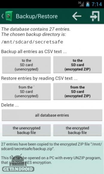 ✤ تابع پشتیبان گیری برای تمام کلمات عبور و سایر اطلاعات محرمانه ذخیره شده بر اساس رمز گذاری ZIP AES 256 (فایل پشتیبان امکان خوانده شدن بر روی کامپیوتر شما با نرم افزار عادی استخراج کننده (UNZIP) را دارد)