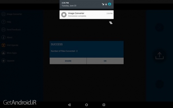 تمام عكسهای تبدیل شده درون برنامه قابل دسترسی بوده و حتی به صورت خودكار در گالری عكسها ذخیره میشود البته به استثنای فرمتهای jpg, jpeg, png, bmp, gif