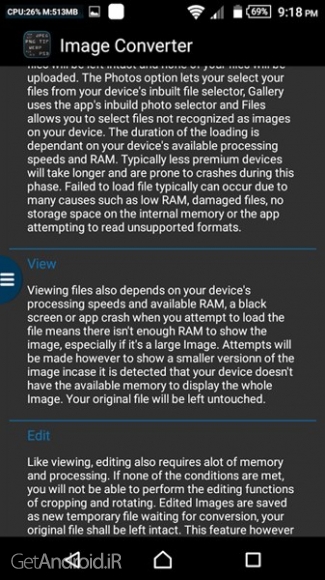 برخی از ویژگی های برنامه Image Converter اندروید :