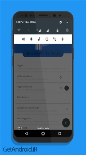 - نمایش پنل کنترل صدا به سبک اندروید P