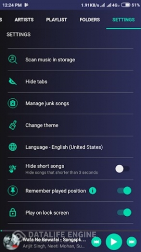 می توانید انواع فایل های صوتی را گوش دهید. موسیقی MP3 مورد علاقه خود و دیگر فایل های خود را انتخاب و گوش کنید. با گوش دادن به موسیقی در این برنامه، پخش موسیقی را بهتر تجربه خواهید کرد. موسیقی، فایل mp3، فایل های صوتی خود را به آسانی پیدا کنید. Music Player تمام موسیقی را در تلفن همراه شما را به سرعت اسکن می کند. اگر شما می خواهید صدای آن را متناسب با فضای اتاق خود افزایش دهید. شما می توانید عددی صوتی را تنظیم کنید.برخی از ویژگی های برنامه Music Player Pro / Unlimited Songs Play اندروید :