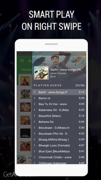- پخش هوشمند اهنگهای صف شده در هر مكان فقط با كشیدن سریع انگشت به سمت راست