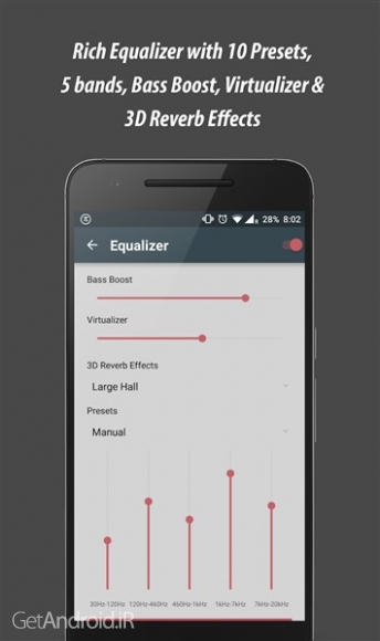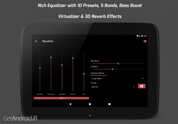 - ساخته شده در 5 گروه اکولایزر با تقویت باس، 3D Reverb Effects، Virtualizer و 10 ایستگاه از پیش تنظیم شده شگفت انگیز.