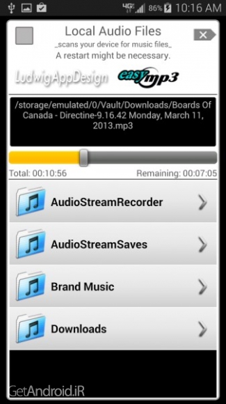 *** اضافه کردن هر جریان MP3 به برنامه. ***