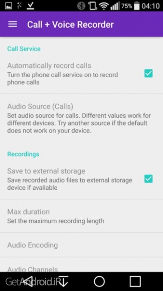✤ ضبط خودکار می تواند خاموش شود بنابراین کاربر می تواند شروع و یا توقف ضبط در طول یک تماس را به صورت دستی انتخاب کند.