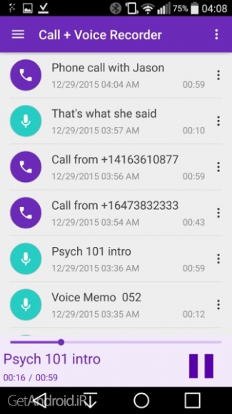 برخی از ویژگی های برنامه CVR Call + Voice Recorder اندروید :
